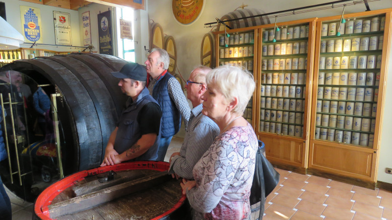 Eingang zum Museumdas Partyfassein Bierkühlerein Holzfass neben modernen Einrichtungengespannt hören alle den Ausführungen zuLagerfässer im Museum – nicht mehr in Gebrauchnun gehts zum gemütlichen Teil überwir wurden köstlich bewirtetwir wurden mit einem Bus der Firma Frecker gefahrenfröhlich und gesättigt wurde die Heimfahrt angetreten